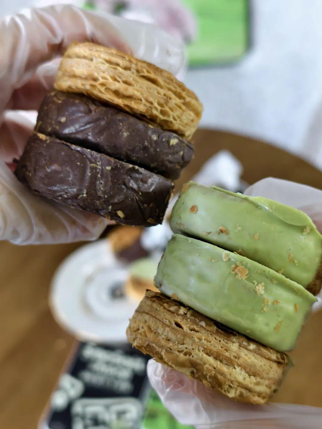 喜山好物海盐千层酥,千层酥天花板,酥皮一碰就掉渣,海盐黑巧+开心果白巧双口味。