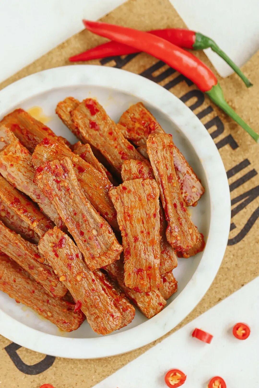 食味的初相 蛋白辣条,厚朴老师独家研发·富含膳食纤维 ≈芹菜的11倍·孕妈妈也能放心吃的美食零食·中度辣·罗汉果甜苷替代蔗糖·只用新鲜番茄熬酱做调味,一口酸、辣、香·满满番茄红素的抗氧化成分。